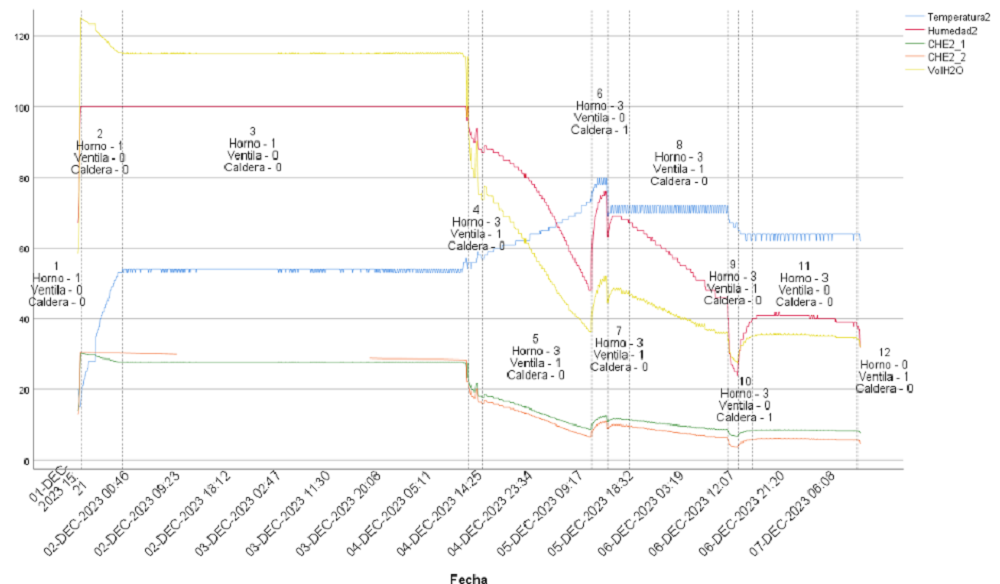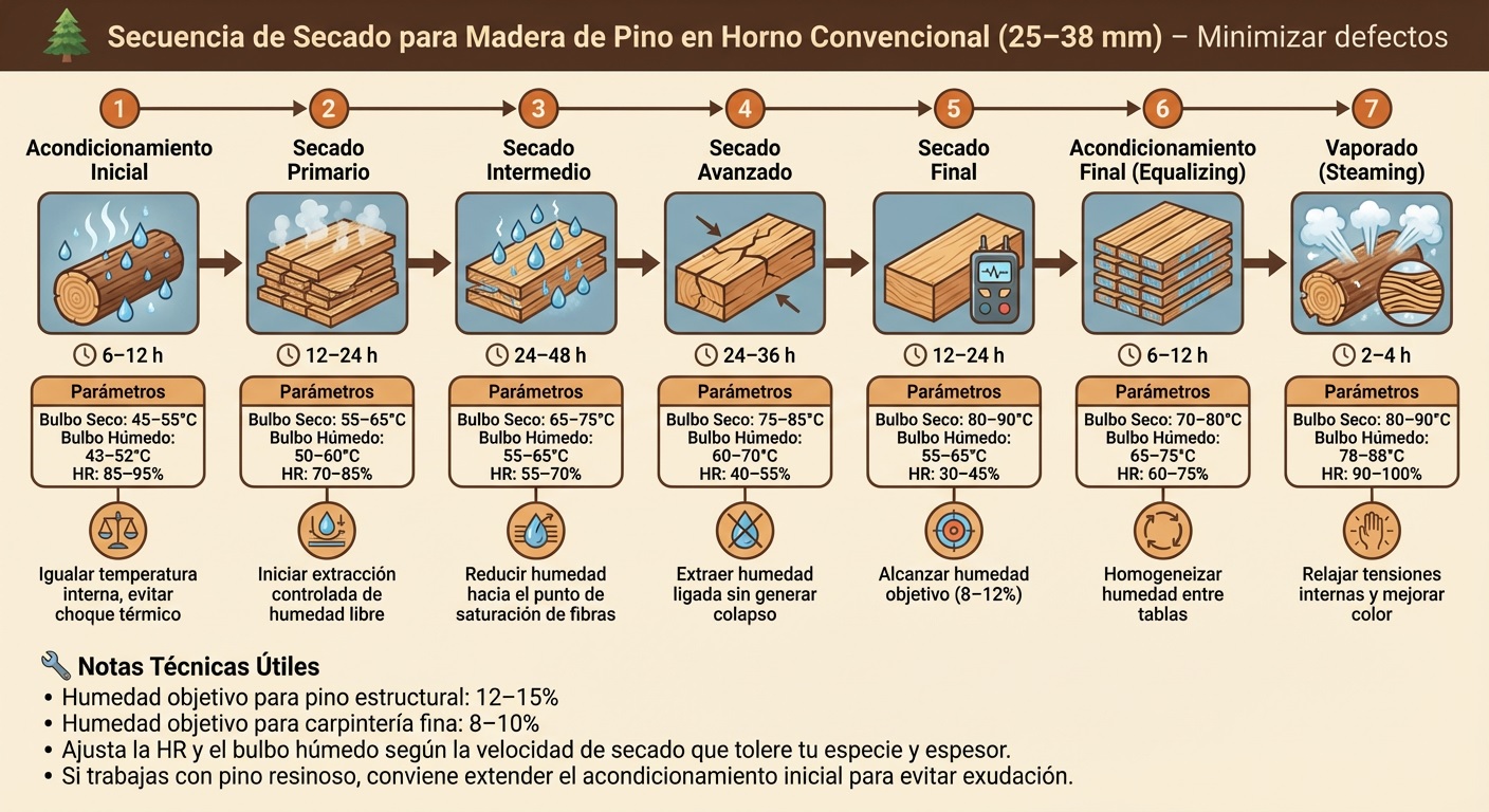 El documento pdf muestra lo que sucede durante el proceso de secado de la madera en el horno.