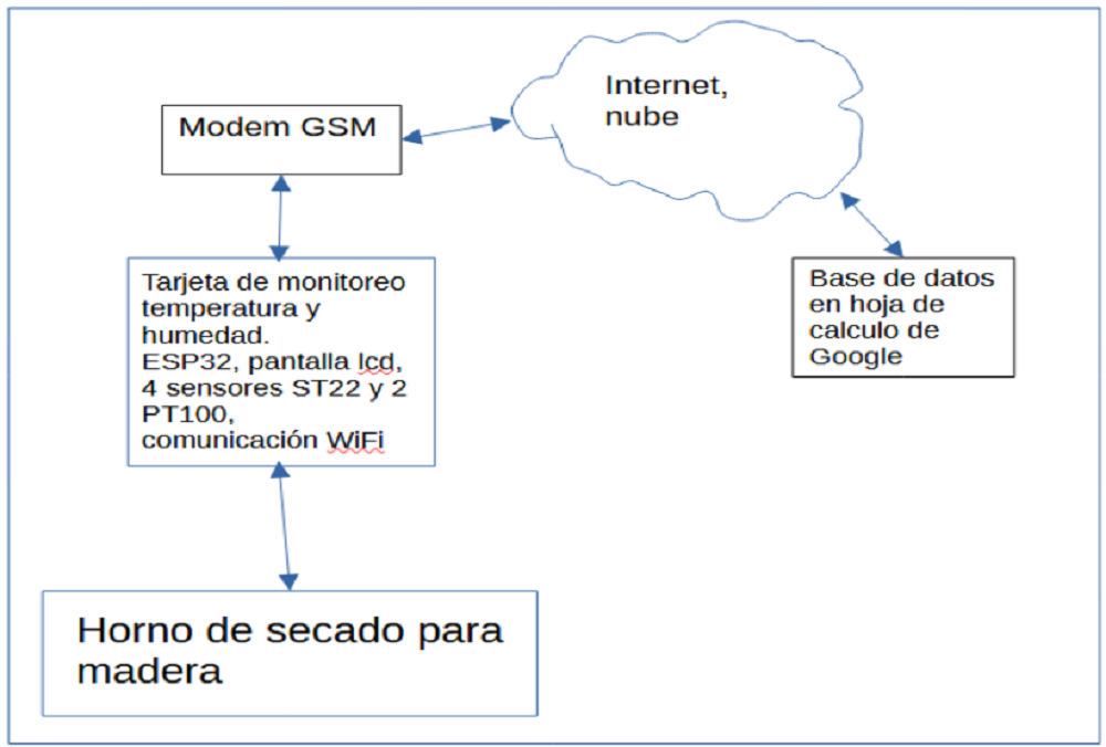 En este video se muestra el desarrollo de una tarjeta electrónica para realizar el monitoreo de un proceso de secado de madera en horno convencional para lograr un contenido de humedad en equilibrio en la madera a partir de monitorear la humedad relativa y temperatura ambiente dentro del horno de secado, con base en estos parámetros la tarjeta calcula el contenido de humedad en equilibrio de la madera, a su vez esta información es enviada a una hoja de cálculo en la nube de google lo que permite registrar los datos de forma permanente mientras este en funcionamiento la tarjeta electrónica. 12-Mayo-2024